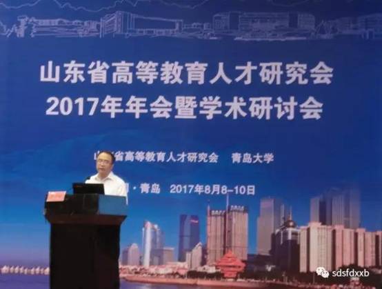 2017年8月9日至10日,山东省高等教育人才研究会2017年年会暨人才发展体制机制改革与高等教育人才培养学术研讨会在青岛大学国际学术交流中心召开,来自省内外高校、科研机构和相关部门的128位人才研究专家学者和人才工作者参加了会议。中共中央组织部人才工作局巡视员、副局长、中央人才工作协调小组办公室副主任李志刚,山东省委组织部副部长马晓磊,青岛市委常委、高校工委书记、市教育局局长邓云锋,中国人才研究会副会长、中国石油大学(华东)原党委书记郑其绪,原山东经济学院党委书记张体勤,青岛大学党委副书记杜方波,青岛大学党委常委、副校长夏东伟等领导和专家出席会议。山东省人民政府参事、山东省高等教育人才研究会会长、省委高校工委原副书记齐秀生主持会议。