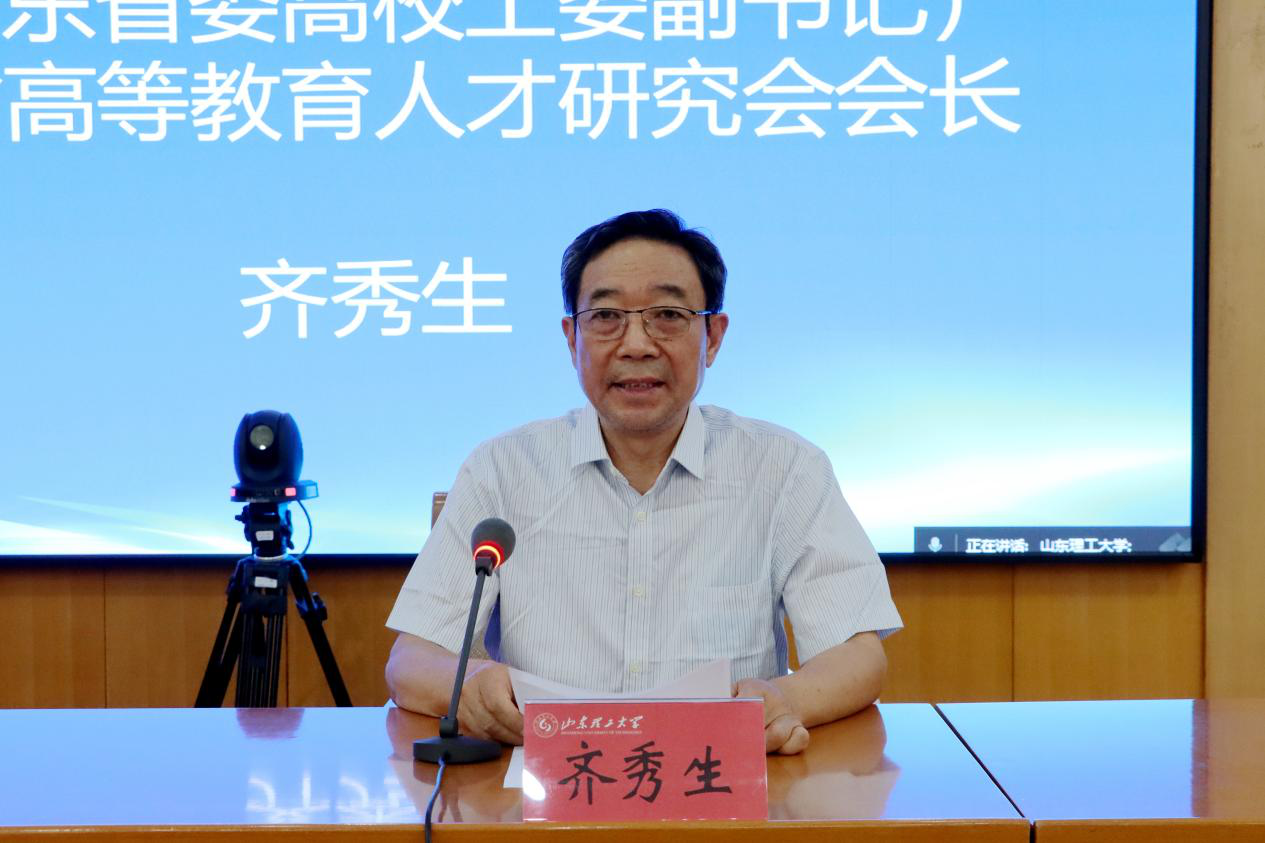 齐秀生代表山东省高等教育人才研究会致辞。他首先介绍了研究会2016年成立以来取得的重要进展和学术成就,对研究会在高素质人才培养、人才战略等领域取得的显著成果进行了重点说明。他指出,采用线上线下相结合、论坛主题与承办单位业务工作相结合的方式举办稷下人才论坛,是深入学习贯彻习近平新时代中国特色社会主义思想,适应国家人才发展战略和高校人才培养需要,有计划有组织开展人才研究工作的创新举措。