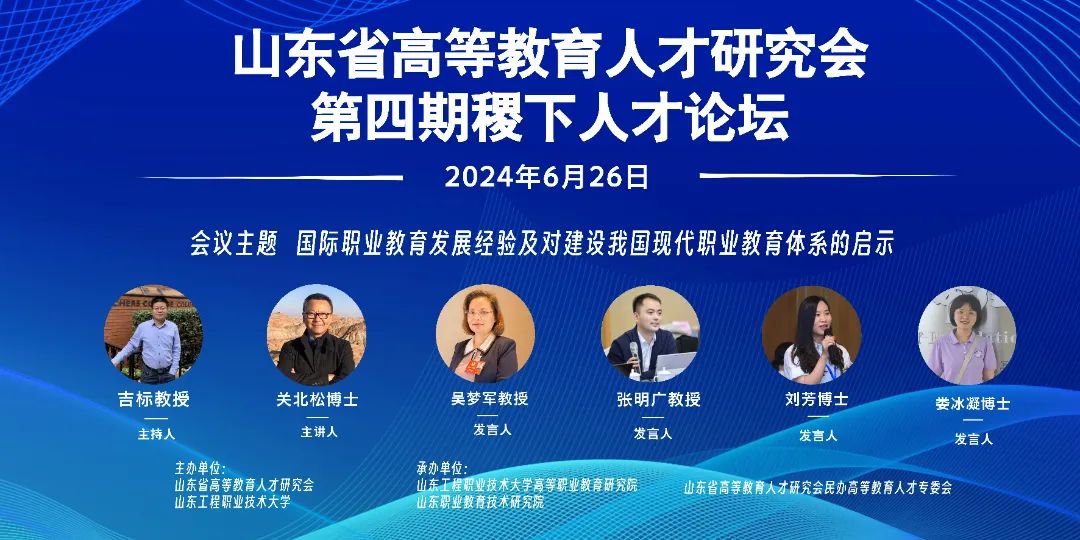 6月26日,山东省高等教育人才研究会第四期稷下人才论坛在山东工程职业技术大学举办。本次活动由山东省高等教育人才研究会、山东工程职业技术大学主办,山东职业教育技术研究院、山东省高等教育人才研究会民办高等教育人才专委会以及我校高等职业教育研究院承办,采用线上线下相结合方式召开。论坛主题为国际职业教育发展经验及对建设我国现代职业教育体系的启示,特邀山东职业技术教育研究院常务副院长吉标教授、澳大利亚职业教育联盟秘书长关北松博士为主讲人,学校校长吴梦军教授、山东职业技术教育研究院张明广副教授、山东师范大学刘芳博士和娄冰凝博士出席论坛。学校督学张玉惕、无课教师、山东师范大学研究生以及山东省高等教育人才研究会会员参加活动。活动由吉标教授主持。