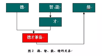 与此同时,评价考核的另一类对象就是人才自身,对人才自身的评价不可繁杂、不可过多过勤,但必须要有,必须科学。这就是《意见》所指出的“突出品德、能力和业绩评价”。人才评价的基本指标充分体现了它的科学性、逻辑性和普适性。平常所说德才兼备,实际上是德、智、能兼备,它们与“绩”是一种因果关系。“德”、“才”是“绩”的必要条件,反过来,“绩”又是“德”、“才”的集中体现。德、智、能、绩不仅从宏观上涵盖了人才的全面素质,而且四者具有密不可分的逻辑关系,这种关系可以用图2表示。