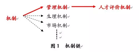 人才评价机制是管理机制的一个微机制,是管理机制的一部分。人才评价机制在机制链上的位置如图1。