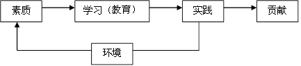 在我国经济社会发展中,人才的发展与经济社会的发展是不同步的,也是无法做到同步的。人才的发展必须优先于社会的发展,这是不以人的意志为转移的客观规律。就人才个体而言,从才能的积累到成才有一个滞后周期。人才个体的发展是在一定的环境作用下,提高素质、不断学习(社会教育)、不断实践的周而复始的循环上升过程。所以,素质、学习、实践、环境是人才发展的四大必备要素。如图3—1所示。