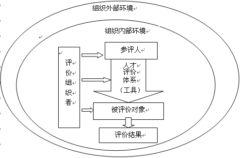 从系统论的角度来看,人才评价是在一定的内外部环境里,由评价的组织者主持,运用已设计好的人才评价体系,由参评者对被评价对象的德、知、能、绩做出科学结论的过程,其基本的思路可用图1的系统模型来显示。
